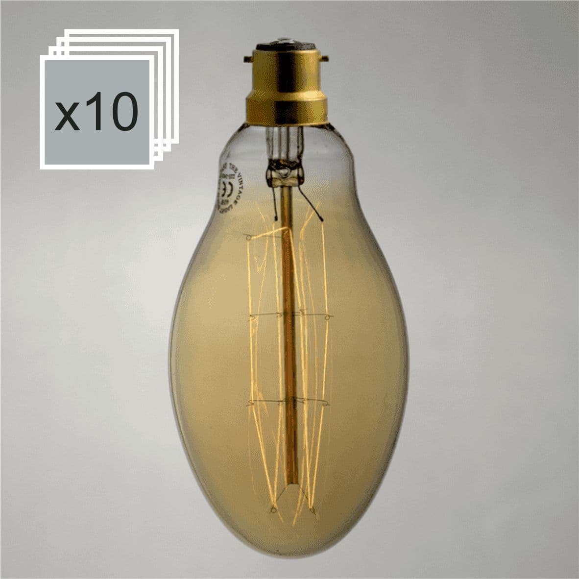 Home / Vintage Light Bulbs / Incandescent Vintage Bulbs / Bulk Discounts on Incandescent Bulbs / B22 (Bayonet) Bulk Discounts Product Description Our dimmable vintage light bulbs will cast a warm ambient light. Made to recreate the same lighting effect as the original Edison design, this bulb looks perfect either on its own as a "bare" bulb or with any conventional lamp shade.Most of our bulbs are available in either a clear or a slightly tinted glass (for an even warmer light). Please choose from the drop down option. Specifications EAN 5056806303383 Glass Smokey Dimensions 75mm (Diameter) x 160mm (Length incl fitting) Filament Hairpin Lamp Fitting B22 / Bayonet Wattage 40W Voltage 220 / 240v - Suitable for UK & Europe Avg. Life Span 3500hrs Dimmable Yes Certification CE Certified Bulb Type Incandescent (Rough Service) Filament Lumens 110 lm Colour Temperature 2000 k MPN 900536- 25 BULBSHAPE E75 - PEAR Energy Efficiency Class N/A Brand The Vintage Light Bulb Company Condition New Product Code 900536-10 Customer reviews No reviews left yet Write A Review Most RecentTop Rated Description Our dimmable vintage light bulbs will cast a warm ambient light. Made to recreate the same lighting effect as the original Edison design, this bulb looks perfect either on its own as a "bare" bulb or with any conventional lamp shade.Most of our bulbs are available in either a clear or a slightly tinted glass (for an even warmer light). Please choose from the drop down option. Specifications EAN 5056806303383 Glass Smokey Dimensions 75mm (Diameter) x 160mm (Length incl fitting) Filament Hairpin Lamp Fitting B22 / Bayonet Wattage 40W Voltage 220 / 240v - Suitable for UK & Europe Avg. Life Span 3500hrs Dimmable Yes Certification CE Certified Bulb Type Incandescent (Rough Service) Filament Lumens 110 lm Colour Temperature 2000 k MPN 900536- 25 BULBSHAPE E75 - PEAR Energy Efficiency Class N/A Brand The Vintage Light Bulb Company Condition New Product Code 900536-10 Reviews No reviews left yet Write A Review Most RecentTop Rated Dispatch & DeliveryDispatch and Delivery We dispatch orders Mon - Fri only £3.50 Standard TRACKED Delivery 2-5 Days £4.95 First Class TRACKED Delivery 1-3 Days £10 Guaranteed Next Day Deliveries for orders received before 2.00 p.m on Monday - Thursday £15 Saturday Delivery: Guaranteed Next Day Delivery for orders received before 2.00pm on Friday International Shipping starting from £5 to Europe and £10 outside Europe. All our prices are exclusive of any local taxes and import duties and you will be responsible for the payment of these taxes and duties. We use Royal Mail for smaller orders and Parcel Force for bulkier parcels ReturnsReturns We do offer a 30 day return policy for unwanted goods that are returned unused, packed as received with all of the original inner and outer packaging. Please read our full returns and refunds policy for further information. Faulty and Damaged items Our bulbs are fragile and despite our best efforts at careful packing and handling might occasionally arrive damaged. If you receive an item that is damaged then please contact us within 14 days of receipt at vintagebulbsuk@gmail.com Delivery & Returns Dispatch and DeliveryWe dispatch orders Mon - Fri only£3.50 Standard TRACKED Delivery 2-5 Days£4.95 First Class TRACKED Delivery 1-3 Days£10 Guaranteed Next Day Deliveries for orders received before 2.00 p.m on Monday - Thursday£15 Saturday Delivery: Guaranteed Next Day Delivery for orders received before 2.00pm on FridayInternational Shipping starting from £5 to Europe and £10 outside Europe. All our prices are exclusive of any local taxes and import duties and you will be responsible for the payment of these taxes and duties.We use Royal Mail for smaller orders and Parcel Force for bulkier parcels Returns We do offer a 30 day return policy for unwanted goods that are returned unused, packed as received with all of the original inner and outer packaging.Please read our full returns and refunds policy for further information.Faulty and Damaged itemsOur bulbs are fragile and despite our best efforts at careful packing and handling might occasionally arrive damaged. If you receive an item that is damaged then please contact us within 14 days of receipt at vintagebulbsuk@gmail.com Customer Reviews Pear Large Hairpin B22 - Bulk Discount Product Code 900536-10 Prices from £8.40 including VAT. Boxes of 10 or 25 bulbs. Quantity 25 Bulbs - 40% Discount 10 Bulbs - 30% Discount RRP: £0.00 £98.00 Login to add this product to your wishlist. You Will Earn 98 points which is the equivalent of £4.90